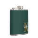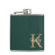 Modern Emerald Green Gold Monogram Script Hip Flask