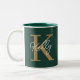 Modern Emerald Green Gold Monogram Script Two-Tone Coffee Mug