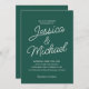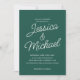 This deep emerald green wedding invitation pairs timeless elegance with modern simplicity. The graceful script for the couple’s names adds a romantic touch, while the clean white text and minimal layout make this design perfect for formal weddings, botanical themes, or nature-inspired celebrations. Ideal for winter or evening ceremonies, this sophisticated design is easy to personalise with your event details. Coordinating RSVP and detail cards available for a complete wedding suite.