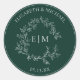 Modern Emerald Green Leafy Crest Monogram Wedding Classic Round Sticker