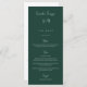 Check out this All-in-One Modern Menu Table Escort Place Card with Thank You for your wedding or party event! This menu card features a clean and simple serif typography font and handwritten script in an emerald green background. The simplicity and clean design of this menu works well with all wedding themes and definitely a great addition to your wedding and/or party event needs. You just customise and personalise the menu with the guest's name, their seating table number, and your menu. On the back, you enter in the newlywed/couple's names with thank you message for a personal touch from the newlyweds or hosts.