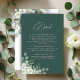 Ensure your guests have all the essential information with our Modern Emerald Greenery Wedding Details Card. Designed with a stunning watercolor arrangement of eucalyptus leaves and delicate jasmine flowers, this card perfectly complements your greenery or watercolor wedding theme. Its elegant, nature-inspired style adds a refined touch while keeping your guests informed about accommodations, venue details, or special events.