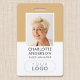 Create a professional appearance with this modern personalised identification badge. A simple and stylish template with your ID photo, name, job title and company logo. On the back, you have the option to add more details and a scannable QR code. All the text can be customised or deleted to suit your business needs. This minimalist and chic design, is perfect for many different workplaces and professions, including office staff, retail salespersons, fashion stylists, makeup artists, beauty salons, boutique employees, small businesses, conference name tags and more! Printed colours: yellow gold and white, with grey type.