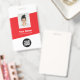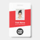 Easily personalise this Custom modern Employee Name Badge with Photo, Scan Bar Code and business logo. A simple business design in red and white colours fully customisable in front and back sizes, sans-serif basic and modern fonts and a professional and clear look. Avaiable with lanyard, metal clip or with retractable. No minimum order.