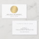 An abstract faux gold circle motif created from an etched pattern is combined with your name or business name to create a modern logo motif on this clean and refined business card design. The simple gold circle lends itself well to creative fields (interior designers, decorators, artists), or professional fields for added identity on your cards. Art and design © 1201AM CREATIVE / www.1201am.com