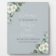 Welcome your guests in style with our Modern Eucalyptus Design Wedding Sign Plaque. A fresh, modern design featuring elegant eucalyptus leaves, and white flowers. This plaque invites your guests to take a program and find a seat. It's perfect for weddings, baby showers, anniversaries, or any special occasion. The soothing green tones and clean lines create a contemporary look that complements any event décor.
