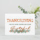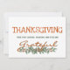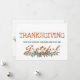 Modern and airy white background Thanksgiving card mixing different fonts and colours, featuring beautiful watercolor eucalyptus branches with burnt orange buds, decorating the customisable typography Thanksgiving, time for caring, sharing and feeling grateful. The white background provides contrast and adds to the modern feel of the card. A beautiful detail for showing your appreciation and saying thanks to those helpful people you are so fortunate to have in your lives.