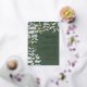 Gorgeous and sophisticate wedding invitation, featuring original watercolor artwork of eucalyptus and foliage in shades of sage green and dusty blue arranged on a dark sage green background with real foil gold splatters and text. Customise with ease.