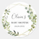Modern Eucalyptus Geometric Frame Floral Baby Shower Classic Round Sticker.