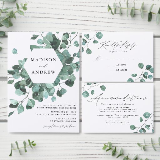 Elegant botanical wedding program featuring your names encircled by a wreath of hand-painted, dusty green eucalyptus and foliage. Personalise the eucalyptus wedding programs by adding your wedding date & location, order of events, and wedding party on the back. Designed to coordinate with our Modern Eucalyptus Greenery wedding collection.