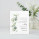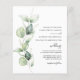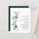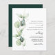 Eucalyptus Greenery Bridal Shower Script Invitation template you can easily edit for your wedding and it is perfect for a chic elegant wedding. Featuring eucalyptus foliage and modern typography on white background. On the reverse side is a plain emerald green background with a boho feel