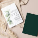 Eucalyptus Greenery Bridal Shower Script Invitation template you can easily edit for your wedding and it is perfect for a chic elegant wedding. Featuring eucalyptus foliage and modern typography on white background. On the reverse side is a plain emerald green background with a boho feel