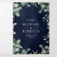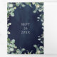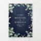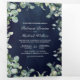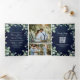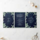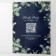Modern Eucalyptus QR Code Navy Blue Wedding Tri-Fold Invitation