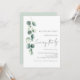 Modern Sage Eucalyptus Wedding Evening Party Invitation. Available dgitally and printed. A Minimalist botanical style to invite your evening wedding guests. A set handwritten script for Evening Party and the rest of the text you can easily personalize. An elegant branch of watercolor eucalyptus leaves runs down the left hand side.