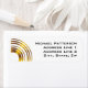 A professional look for your correspondence, this return address label features concentric golden circles over a plain white background. Personalise with your information by replacing the sample text in the design template.