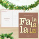 Easy to customise, just personalise these simple modern Fa la la la la no photo gold foil Christmas postcards with your name for a fun way to spread holiday joy. The minimalist typography design features earth tones of a warm tan and mocha coffee brown, bold lettering in elegant real gold foil with a dark drop shadow and a text template at the bottom for your name and the year, if you like. Each Fa la la la la gold foil postcard holiday card reverses to a solid white with a warm tan border, room for your return address and a text template for your custom Christmas text or you can remove the placeholder message. These real gold foil personalised non-photo typography postcard holiday cards in earthy colours of mocha coffee and tan blend whimsy and tradition with modern minimal graphic design.