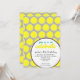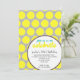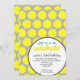Modern Ikat inspired pattern with grey background and bright yellow circles. Your party information written in fancy, modern fonts. Very girly and colourful