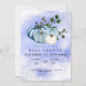 perfect design invitation for girls and girl of the best baby shower Halloween with family and friends.blue watercolor pumpkin moon halloween design with blue funny bats.