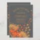 Beautiful Autumn flowers Bridal Shower Invitation featuring stylish & chic golden yellow & orange flowers set on a pretty grey coloured background. Flip our trendy wedding shower invitation over to view a popular coordinating back for an extra special touch.