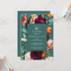 A modern fall floral birthday party invitation in a with rich colour palette in jewel tones of teal, burgundy red, russet orange, and blush pink creates a lovely floral border surrounding your text. These colours are often used from late-summer into fall and through the winter months. A thin handwritten script type face spells out the word birthday in carefree style. Personalise the text template with your event details. Shown here as a 40th birthday celebration, you can personalise with any age.