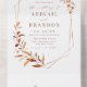 Modern fall wedding invitation featured rustic watercolor autumn botanical foliage design with faux copper foil leaves and geometric frame, simple and elegant, great for fall rustic wedding, winter botanical garden wedding.