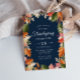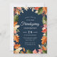 This celebration invite has a colourful foliage design and navy blue background. The colours and other features on this thanksgiving dinner invite can be personalised.