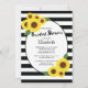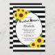 Modern Fall Sunflower Bridal Shower Invitations featuring beautiful autumn sunflowers set on a contemporary black & white stripe background.