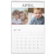 Add your favourite photos to make a modern photography calendar. Each month includes room for 2 photos. The background is white.