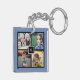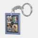 Modern blue grey family custom photo collage and monogram with Family name, keychain..