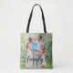 Carry your favorite memories with this beautiful photo tote featuring a full-bleed personal photo overlaid with "Family" in elegant calligraphy script finished with a sweet heart flourish. A meaningful keepsake for everyday use, family reunions, or a thoughtful gift for parents and grandparents. Photo and text are fully customizable.