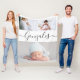 To add an extra touch of elegance, the blanket features a modern script font for your family's last name, complete with long tail swashes that exude sophistication. This stylish design element adds a timeless appeal to the blanket, making it a truly special and personalised piece.