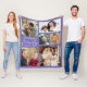 Modern Family Name 6 Photo Collage Purple Fleece Blanket