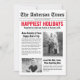 This whimsical holiday photo card features a newspaper theme that you customise with fun headlines, story text, and photos. At the top, the name of the newspaper is customised with your name and the main headline / greeting reads "HAPPIEST HOLIDAYS". On the back there is one more story and horizontal photo. Simply replace the temporary photos with your photos and change the text - it's so easy! This is a wonderful design for those that want to highlight certain events or milestones from the year - perfect for families!!