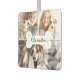 Our modern design features a minimalistic three photo collage grid layout with a modern white chalk style dog bone placed in the centre of the three photo collage layout. Customise with your pet's name. The reverse side of the photo air freshener features one single photo in the middle with the pet's name place inside a chalk style dog bone. You can customise the text size, text colour, font, and layout for your own personal design preference.