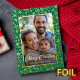 Modern family photo Christmas elegant script green Foil Holiday Card