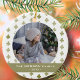 Modern Family Photo Floral Pattern Christmas Ceramic Ornament. Cute and modern design with a green simple flower pattern. Add your photo and name and make a sweet keepsake for a family.