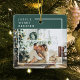 Modern Family Photo | Joyful Merry Blessed | Green Ceramic Ornament