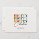 Modern and festive Christmas photo cards provide a stylish way to send warm holiday greetings to family and friends. The front cover features a clean white background with a bold, contemporary design showcasing the word “Merry” repeated three times in vibrant seasonal shades of orange, green, and blue, followed by the word “Christmas” in elegant script. This combination of playful typography and sophisticated lettering creates a unique and eye-catching holiday card that feels both cheerful and refined. Beneath the design, the customisable family name adds a personal touch, ensuring your holiday wishes feel thoughtful and memorable. The reverse side offers space for a full photo, allowing you to share a cherished family moment that recipients will treasure. Perfect for Christmas, holiday parties, or seasonal updates, this card blends modern minimalism with festive flair, making it ideal for families who want their greetings to stand out. Professionally designed for easy customisation, it is a timeless keepsake that conveys joy, love, and holiday spirit. Available as printed cards or an instant digital download.