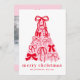 Modern Merry Pink & Red Bow Tree Flat Merry Christmas Card with photo template on the back. Personalized Festive Fun to send stylish holiday cheer with this trendy flat Christmas card, featuring a playful hand-sketched tree topped with a bold red bow and soft pastel pink accents. The modern design blends festive fun with a chic, minimalist aesthetic, perfect for families who love a fresh take on tradition. The bright “Merry Christmas” message adds a joyful touch, while space for your family name makes it uniquely yours. Personalize with ease to create a one-of-a-kind card that spreads warmth, love, and modern holiday spirit!