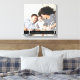 Affordable custom printed wrapped canvas wall art personalised with your photos and text. This modern minimalist design features large family script text overlaid on your family photo with your name monogram and family established date below. Use the design tools to edit the text fonts and colours and add more photos to create a one of a kind personalised family photo sign. Custom canvas prints make great gifts for family and friends.