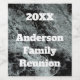 These modern family reunion wine bottle labels feature a black and white design of falling water. The two-tone photo of water provides an abstract and contemporary backdrop for the year and your family's name. Personalise easily to create a one of a kind bottle label for your next family picnic, dinner, or gathering.