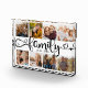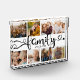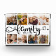 Modern custom photo collage block with space for 8 photos surrounding a trendy swirly script reading FAMILY and your custom name below.