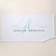 Modern Fancy Script Monogram Teal Turquoise White Beach Towel