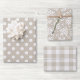 Custom-designed wrapping paper sheets featuring farmhouse style beige buffalo check, dots, and foliage pattern design.