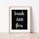 Modern farmhouse Brush and Floss bathroom art print. Click the Customise It button to add your own text, change fonts and colours create a unique one of a kind design!
