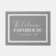 Modern farmhouse doormat personalised with your family name and established date. Faux burlap canvas texture background. Click the Customise It button to add your own text and create your own unique one of a kind design!
