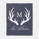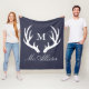 Modern Farmhouse White Buck Antlers & Navy Blue Fleece Blanket