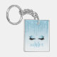Modern Elegant Fashionable and Trendy Light Blue Keychain personalised with your Monogram Initial and Name. Sparkling Eyelashes. Dripping Glitter with sparkles.