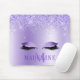 Modern Elegant Fashionable and Trendy Violet Purple Glitter Mouse Pad personalised with your Monogram Initial and Name. Sparkling Eyelashes.