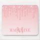 Modern Elegant Fashionable and Trendy Pink Blush Glitter Mouse Pad personalised with your Monogram Initial and Name. Dripping Glitter with sparkles.